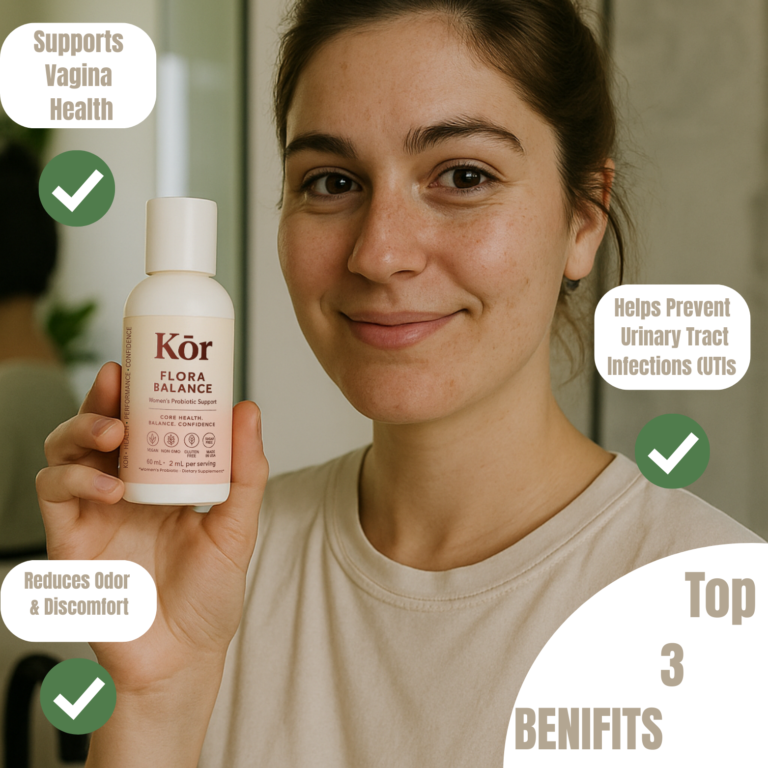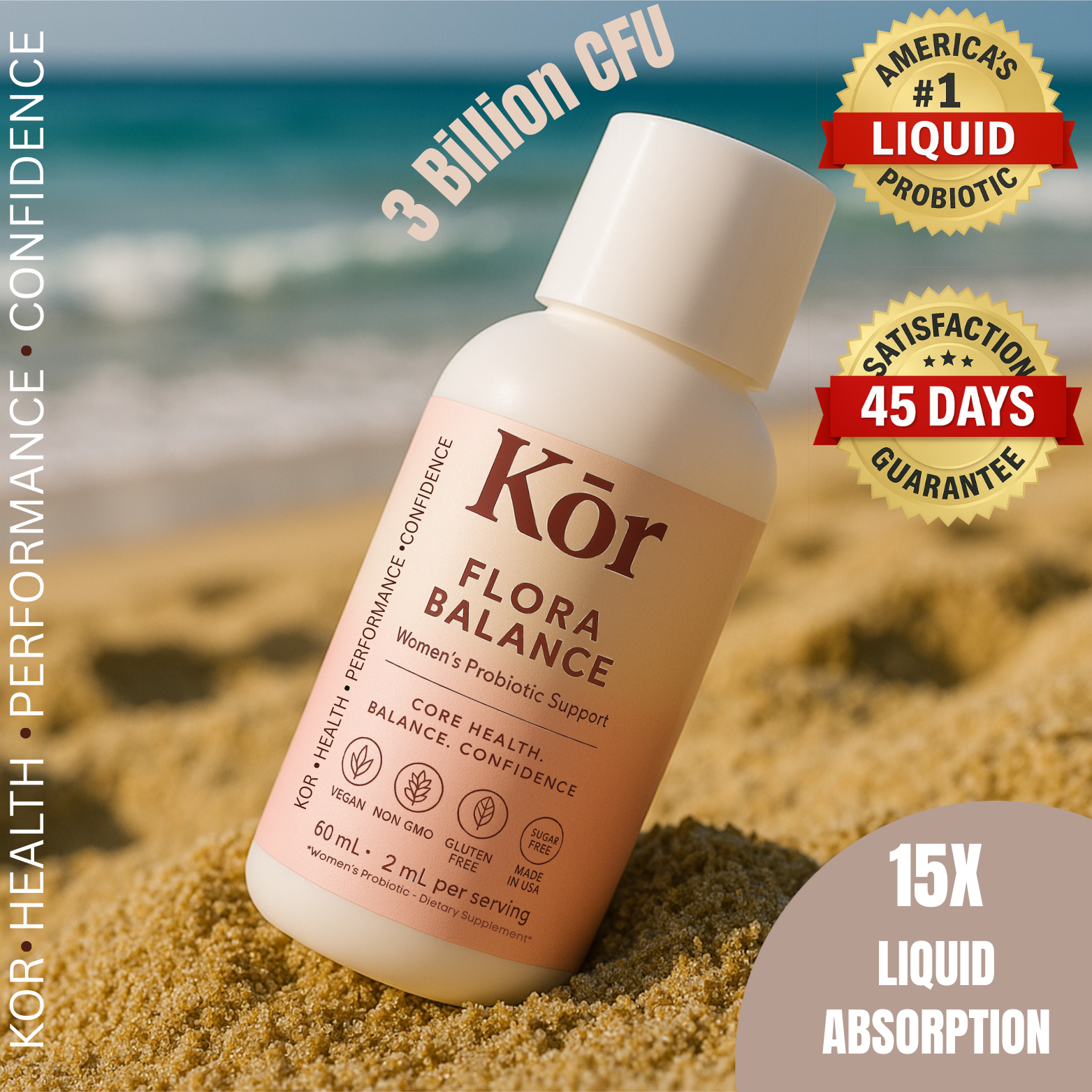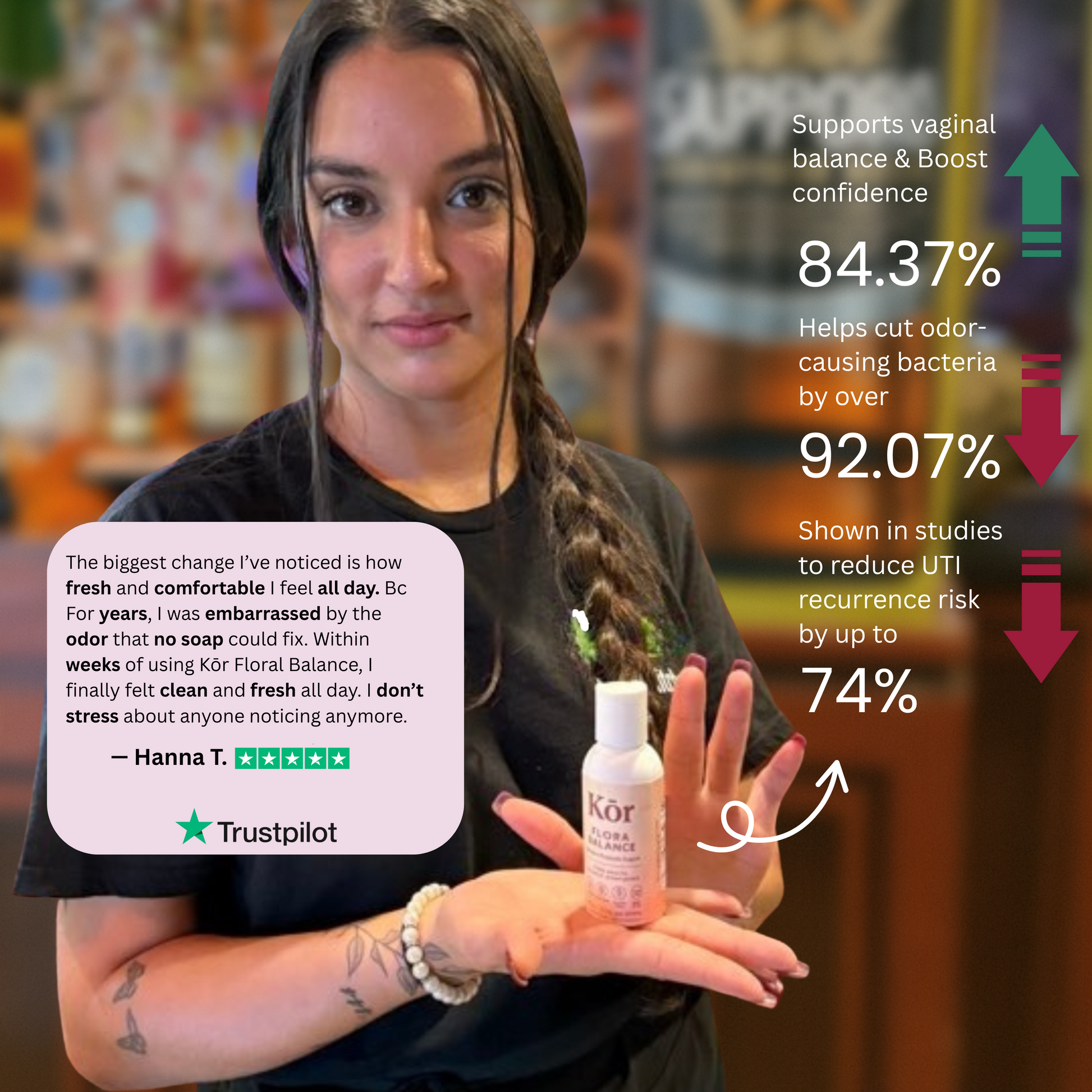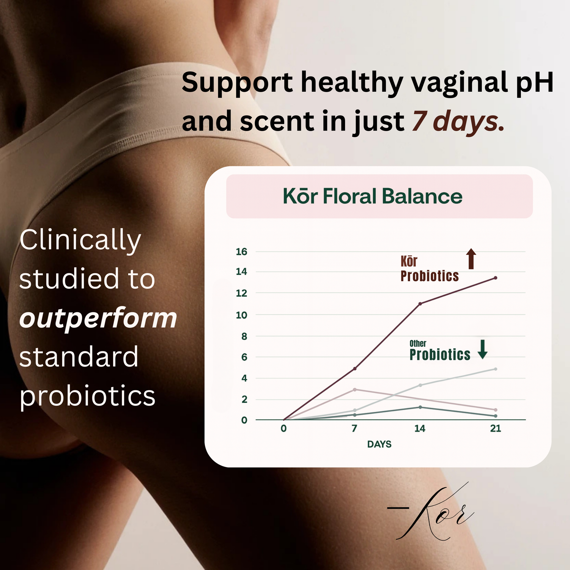 Kōr Floral Balance is designed to keep you feeling fresh, light, and confident every day. Our women’s probiotic supports urinary tract health, eases bloating, balances mood, and helps maintain natural freshness — so you can focus on living, not worrying.