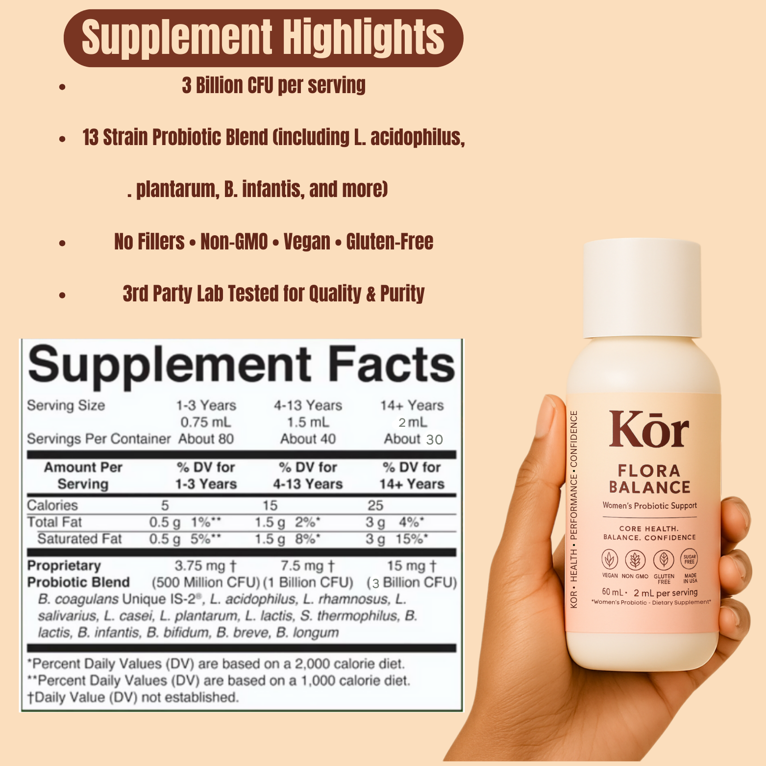 Fact: Not all probiotics are created equal. Many store brands don’t survive stomach acid. Floral Balance uses strains that are proven to reach the intestines alive, at an effective 3 billion CFU dose — enough to make a noticeable difference.